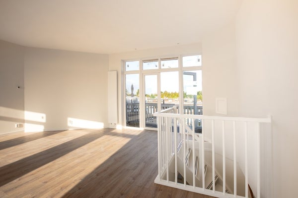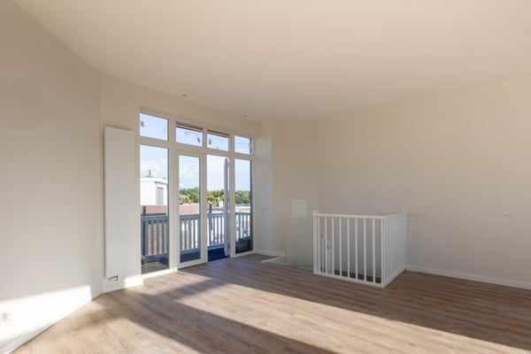 Derde etage: Deze in 2025 nieuw aangelegde woonlaag van 45 m2 beschikt over een riante woonkamer met aansluitpunten voor het zelf plaatsen van een luxe open keuken met een kookeiland. Vanuit de woonkamer is er toegang tot het ruime dakterras van 6 m2 op het oosten met fraai uitzicht. Alle ramen op deze etage zijn voorzien van HR++ glas met draaikiepramen.