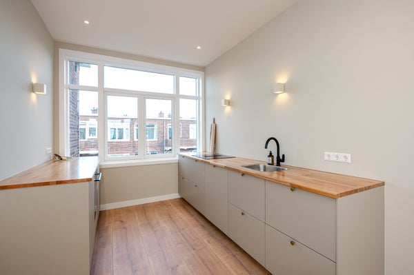 Dit prachtig gerenoveerde 5-kamer topappartement aan de Voorthuizenstraat 160 in Den Haag is instapklaar en beschikt over drie comfortabele slaapkamers. De ruime woon-/eetkamer en de ruime woonkeuken aan de achterzijde zijn uitgerust met nieuwe apparatuur, waaronder een heteluchtoven en inductiekookplaat. Het appartement heeft een moderne badkamer met vloerverwarming, een ruime douche, ligbad en aansluiting voor wasmachine en droger. De woning is volledig gasloos, met Daikin-airco's voor verwarming en koeling in elke kamer. Gelegen in de kindvriendelijke wijk Rustenburg en Oostbroek, dichtbij winkels, restaurants en met goede bereikbaarheid van het centrum. Met een woonoppervlakte van circa 89 m² en een actieve VvE-bijdrage van €114,- per maand.