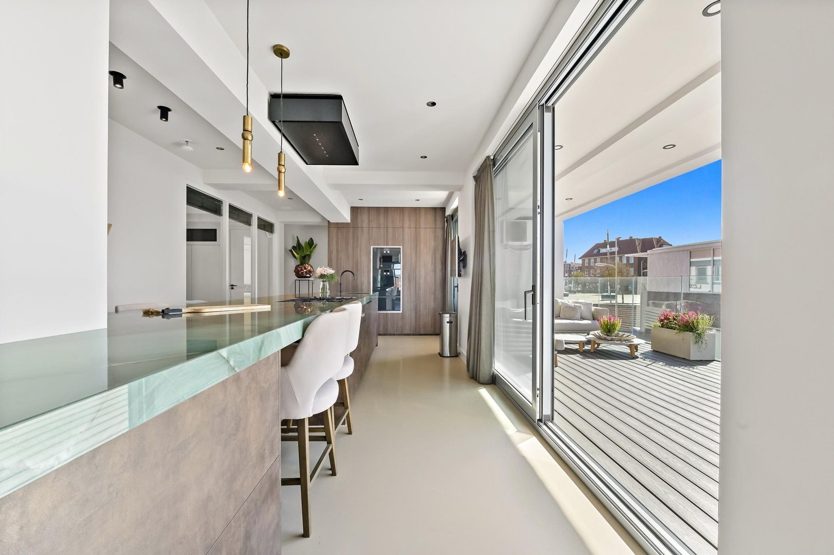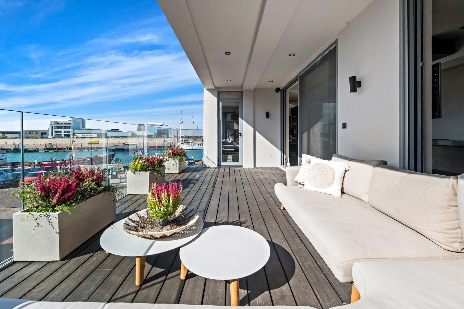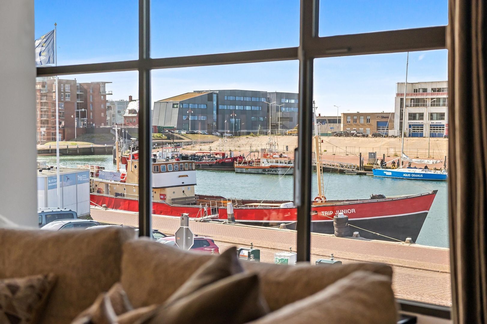 Dit unieke luxe appartement met panoramisch uitzicht in de haven van Scheveningen biedt ruimte, comfort en luxe. Het is prachtig verbouwd en beschikt over een royaal zonneterras, 2 à 3 eigen parkeerplaatsen op een afgesloten terrein en adembenemend uitzicht op de havens en de Noordzee. Met drie slaapkamers, elk met eigen badkamer, en een ruime woonkamer met een luxe woonkeuken, is dit appartement ideaal voor wie houdt van comfort en stijl. De binnenruimtes zijn voorzien van vloerverwarming en hoogwaardige afwerking, waaronder Gaggenau apparatuur in de keuken. Het deels inpandige terras van circa 25 m² biedt zon en uitzicht over de haven. Gelegen op een toplocatie, nabij winkels en het Scheveningse strand, combineert dit appartement de voordelen van stedelijk wonen met een vakantiegevoel.