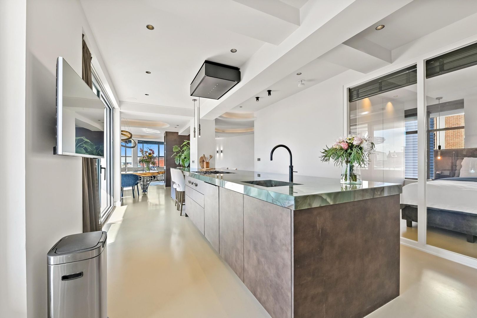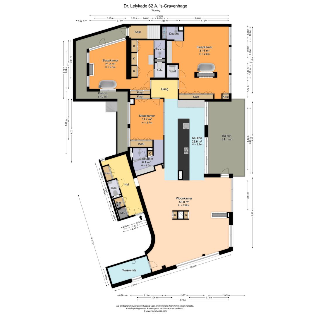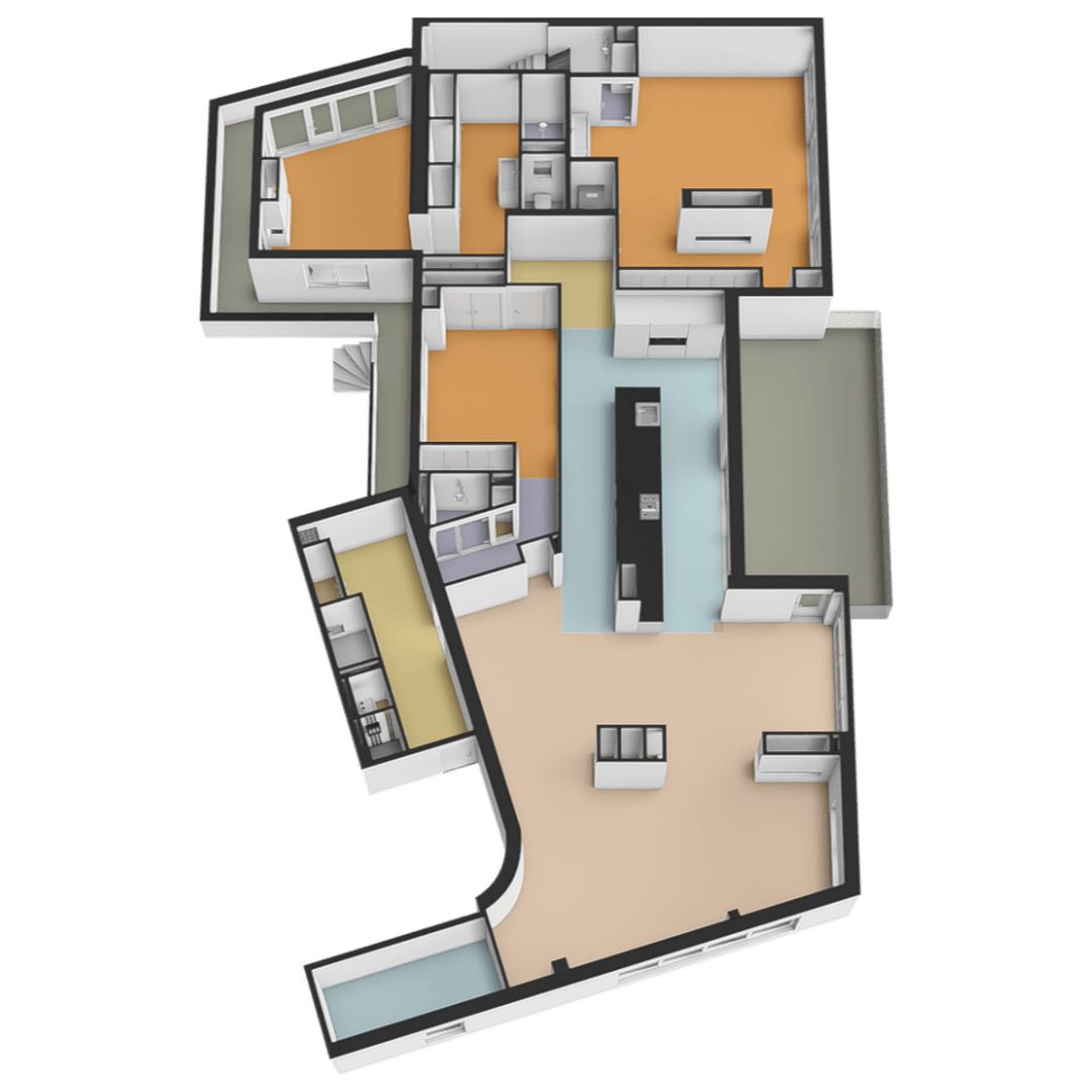 - De galerijflat heeft een woonoppervlakte van 210 m² en beschikt over 5 kamers, waarvan 3 slaapkamers;