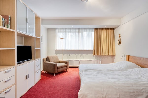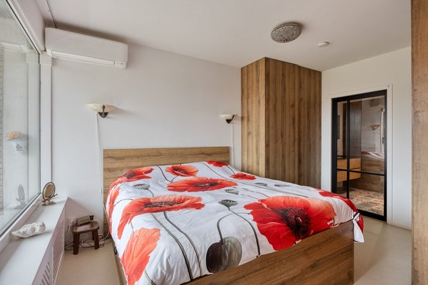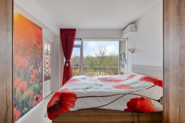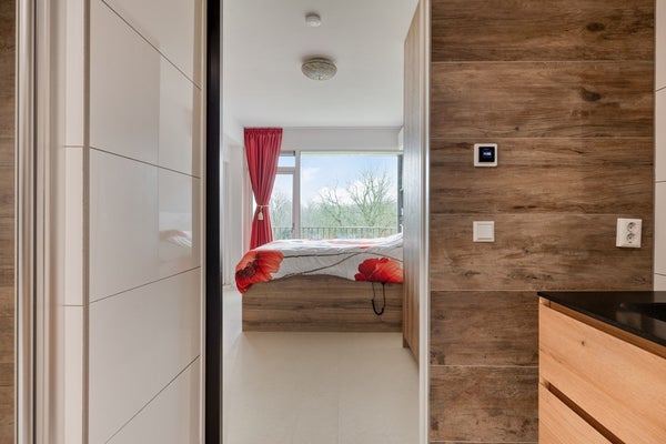 Vanuit de woonkamer stapt u zo het zonnige balkon op (gelegen op het westen), waar u geniet van een vrij uitzicht en de rustgevende omgeving. De royale slaapkamer beschikt over een luxe badkamer (dubbele rainshower) en suite met wc, wat zorgt voor een hotel-vibe in uw eigen huis. Bekijk de plattegrond voor de indeling van het appartement.