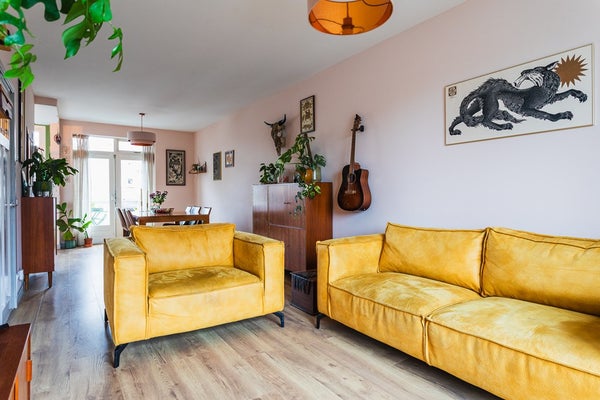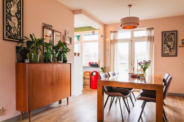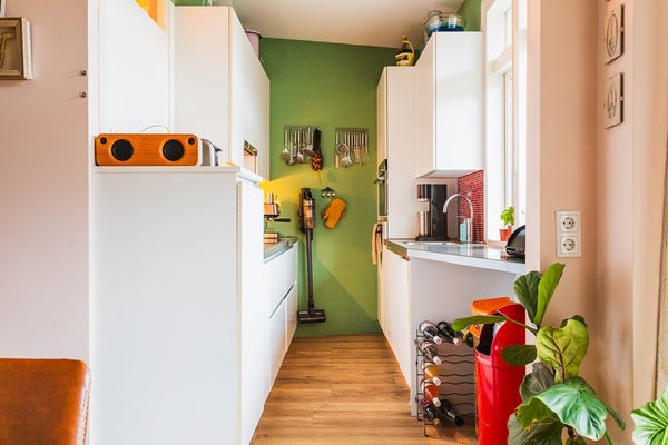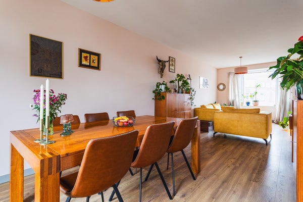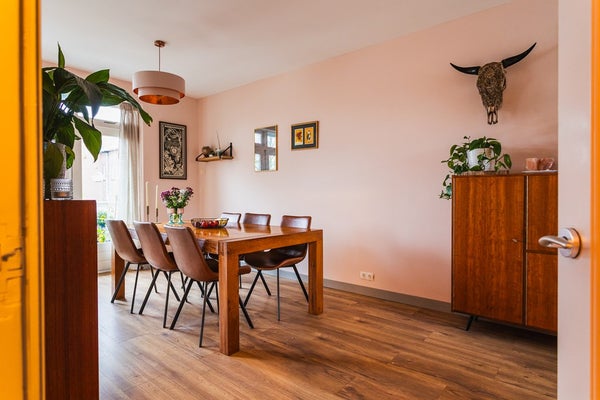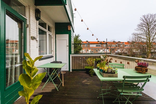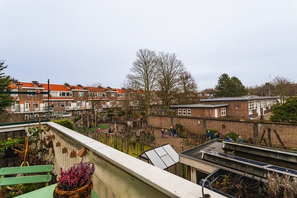 Located in the popular Vruchtenbuurt, just around the corner from Pomonaplein and within walking distance of shops, public transport and green spaces, this well-laid-out two-storey upper apartment is situated in a classic portico building. The private entrance is on the first floor. The property features a living room extending the full length of the apartment with an open-plan kitchen and a large south-facing sunny balcony directly connected to the living area. On the upper floor there are three bedrooms and a fully fitted bathroom. With a living area of approximately 97 m² and a total of more than 21 m² of balconies, this is a comfortable and practical family apartment.