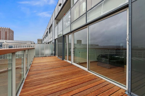 Dit stijlvolle 3-kamer appartement aan de Leeghwaterkade biedt de perfecte combinatie van stadsleven en rust aan het water. Met een woonoppervlakte van circa 113 m² en een groot zonnig terras van ongeveer 30 m², is het ideaal voor wie houdt van licht en ruimte. Gelegen op de 6e verdieping van een modern complex uit 2004, beschikt de woning over een royale woonkamer die in verbinding staat met de open keuken, twee goed bemeten slaapkamers, een moderne badkamer en een separaat toilet. De hoofdslaapkamer heeft een inloopkast. Met een actieve VVE en een maandelijkse bijdrage van € 409,81, inclusief parkeerplaats, geniet je van alle gemakken. De locatie is uitstekend, nabij station Hollands Spoor en uitvalswegen. Maak snel een afspraak voor een bezichtiging!