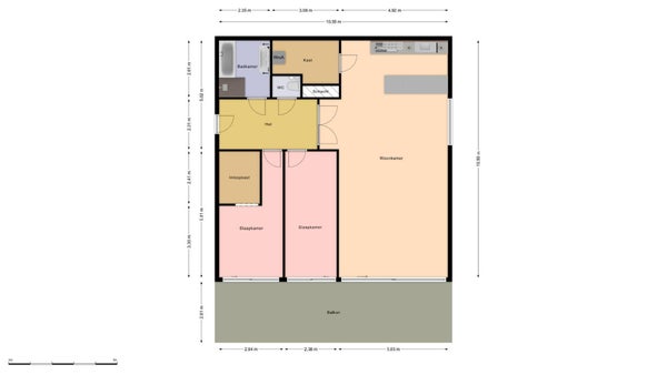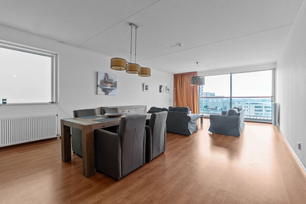 - De galerijflat heeft een woonoppervlakte van 113 m² en beschikt over 3 kamers, waarvan 2 slaapkamers;