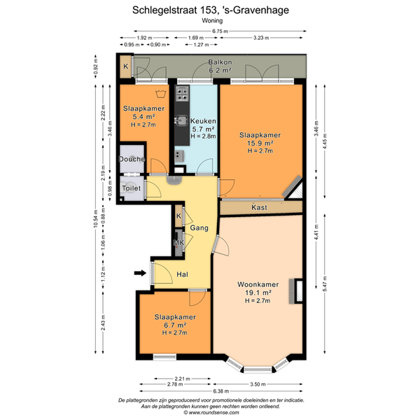 Balkon aan de achterzijde (6,75 x 0.92);