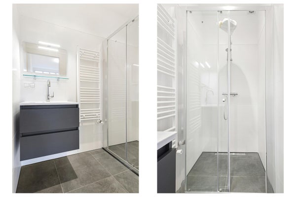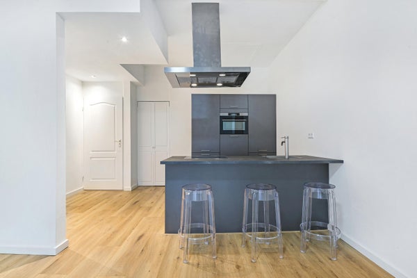 - De tussenverdieping heeft een woonoppervlakte van 60 m² en beschikt over 3 kamers, waarvan 2 slaapkamers;