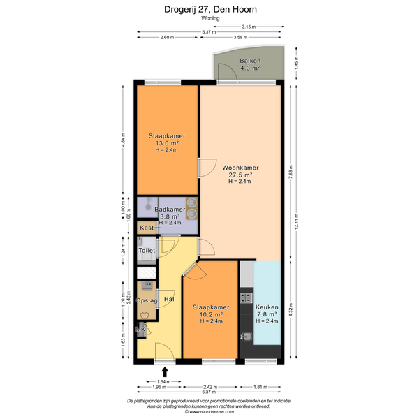 - De galerijflat heeft een woonoppervlakte van 76 m² en beschikt over 3 kamers, waarvan 2 slaapkamers;