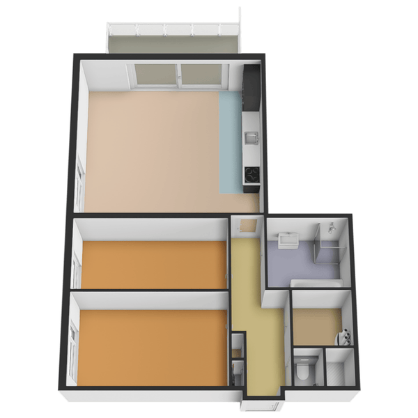 - De galerijflat heeft een woonoppervlakte van 81 m² en beschikt over 3 kamers, waarvan 2 slaapkamers;