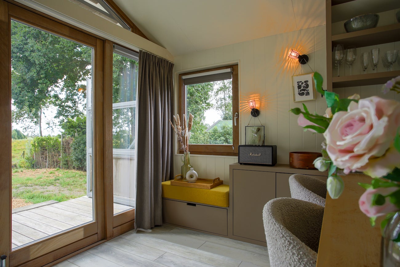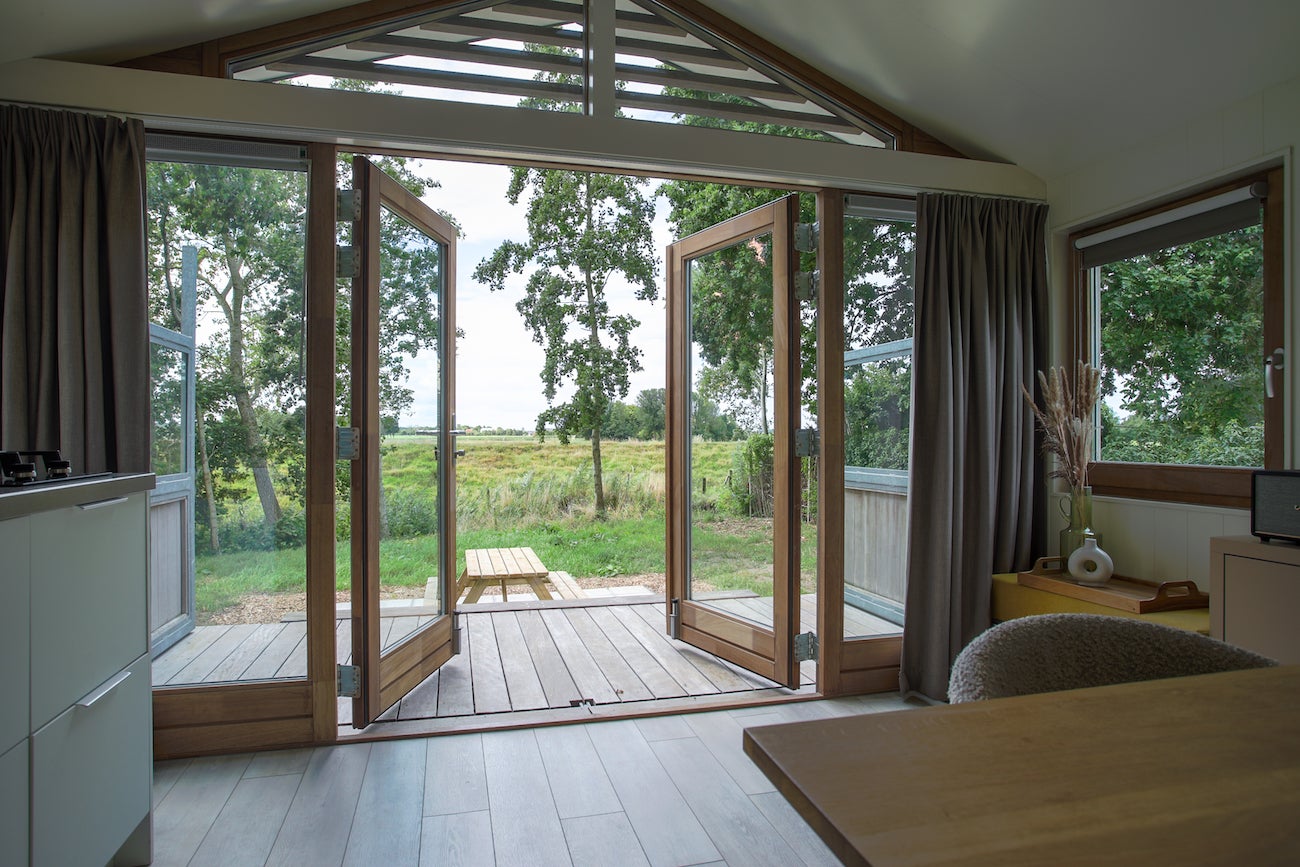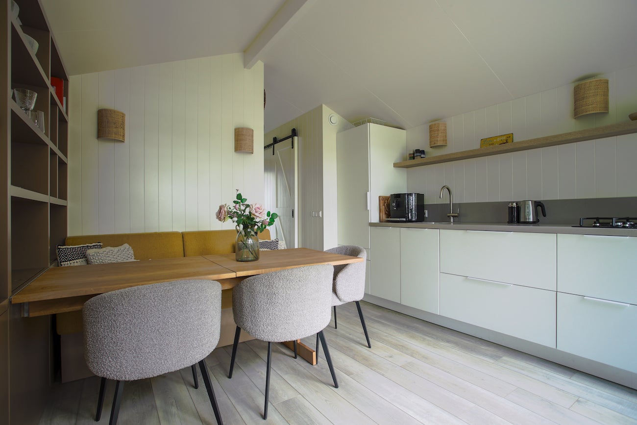 Dit volledig geïsoleerde chalet met eigen grond van 475 m2 ligt bij de Waddenzee op Recreatiepark de Wierde in Den Oever, Noord-Holland. De woning is onderhoudsvriendelijk en voorzien van Iroko hout en HR++ glas. De woonkamer is licht dankzij veel ramen en openslaande deuren naar een veranda met vrij uitzicht. De luxe keuken heeft een AEG gaskookplaat, vaatwasser en voldoende kastruimte. De slaapkamer biedt ruimte voor 6 personen met hoogwaardige stapelbedden. De badkamer heeft een inloopdouche en wc. De tuin beschikt over veel groen, een terras en een schuur met wasmachine. Het park is het hele jaar geopend, dichtbij het IJsselmeer en biedt wandel- en fietsmogelijkheden.