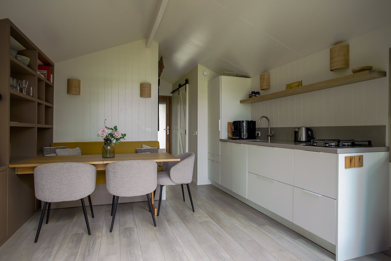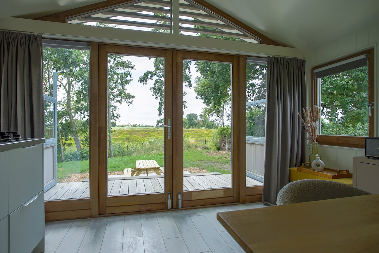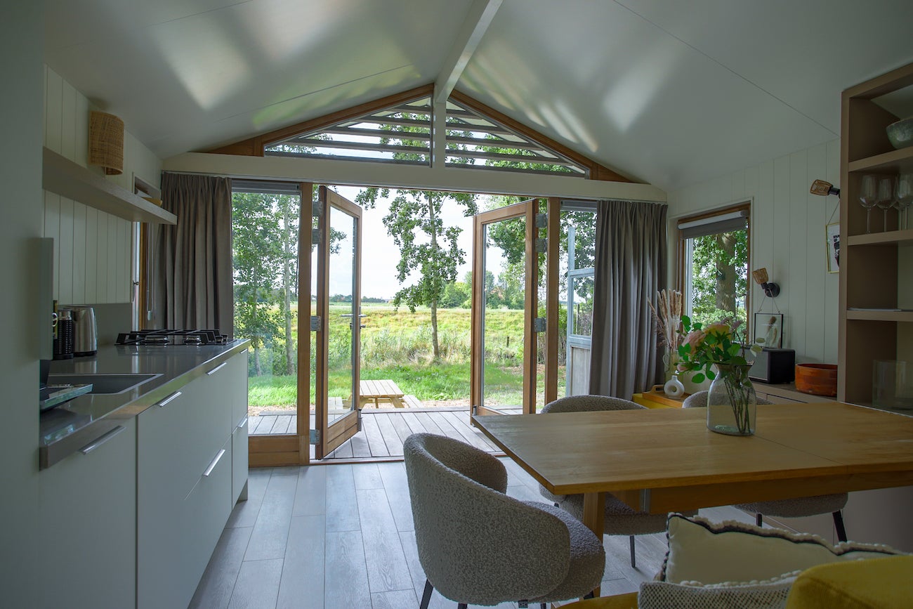 Dit volledig geïsoleerde chalet met eigen grond van 475 m2 ligt bij de Waddenzee op Recreatiepark de Wierde in Den Oever, Noord-Holland. De woning is onderhoudsvriendelijk en voorzien van Iroko hout en HR++ glas. De woonkamer is licht dankzij veel ramen en openslaande deuren naar een veranda met vrij uitzicht. De luxe keuken heeft een AEG gaskookplaat, vaatwasser en voldoende kastruimte. De slaapkamer biedt ruimte voor 6 personen met hoogwaardige stapelbedden. De badkamer heeft een inloopdouche en wc. De tuin beschikt over veel groen, een terras en een schuur met wasmachine. Het park is het hele jaar geopend, dichtbij het IJsselmeer en biedt wandel- en fietsmogelijkheden.