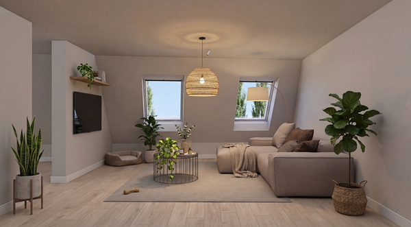 Nieuwe PVC visgraatvloer, strak gestucte en gesausde muren