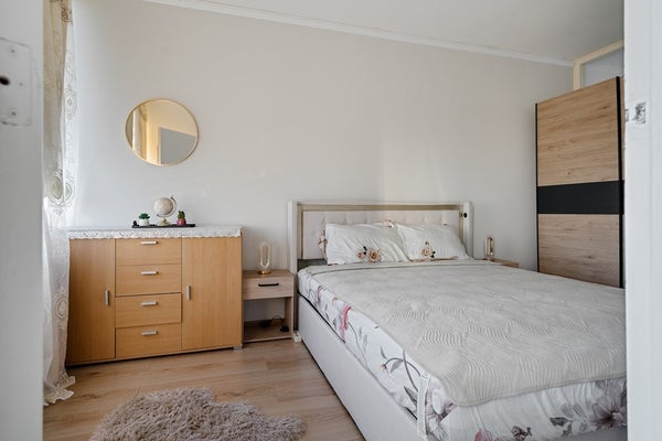 - De portiekflat heeft een woonoppervlakte van 67 m² en beschikt over 3 kamers, waarvan 2 slaapkamers;