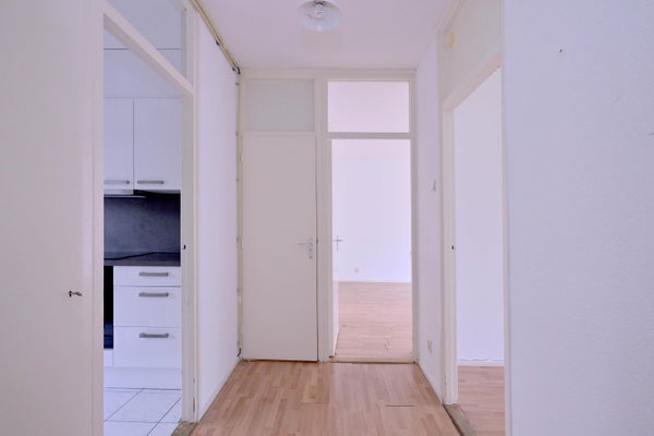 - De portiekflat heeft een woonoppervlakte van 65 m² en beschikt over 3 kamers, waarvan 2 slaapkamers;
