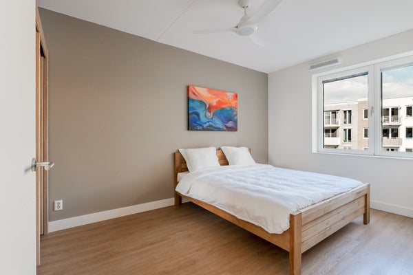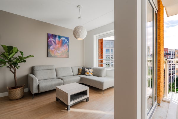 - De galerijflat heeft een woonoppervlakte van 72 m² en beschikt over 3 kamers, waarvan 2 slaapkamers;