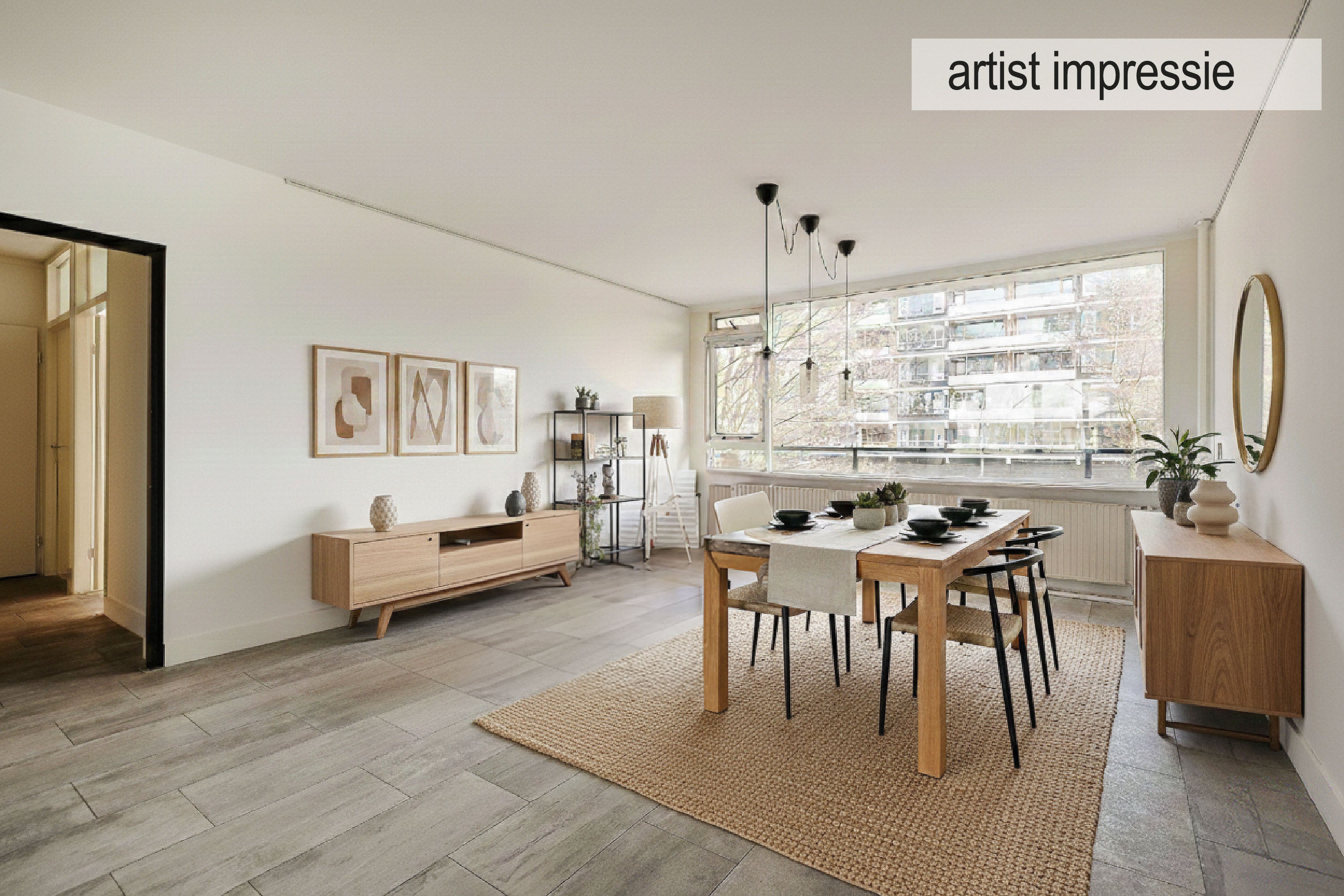 Ben je op zoek naar een ruim en licht 3-kamer appartement op eigen grond met de mogelijkheid voor extra slaapkamers? Dit appartement op de eerste verdieping biedt 120 m² woonoppervlakte, twee zonnige balkons en een praktische berging op de begane grond. De indeling begint met een nette gemeenschappelijke entree met lift en toegang tot de bergingen. Bij binnenkomst in de hal vind je een modern toilet en een keuken met 4 pits gasfornuis en toegang tot het oostgericht balkon. De royale woon-eetkamer van circa 51 m² biedt flexibiliteit voor het creëren van extra kamers. De achterste slaapkamer grenst aan een tweede balkon op het zuiden, met een moderne badkamer in de nabijheid. Gelegen in een rustige wijk dichtbij voorzieningen, met goede verbindingen naar Amsterdam.