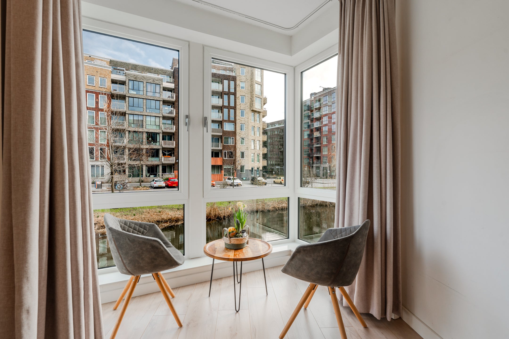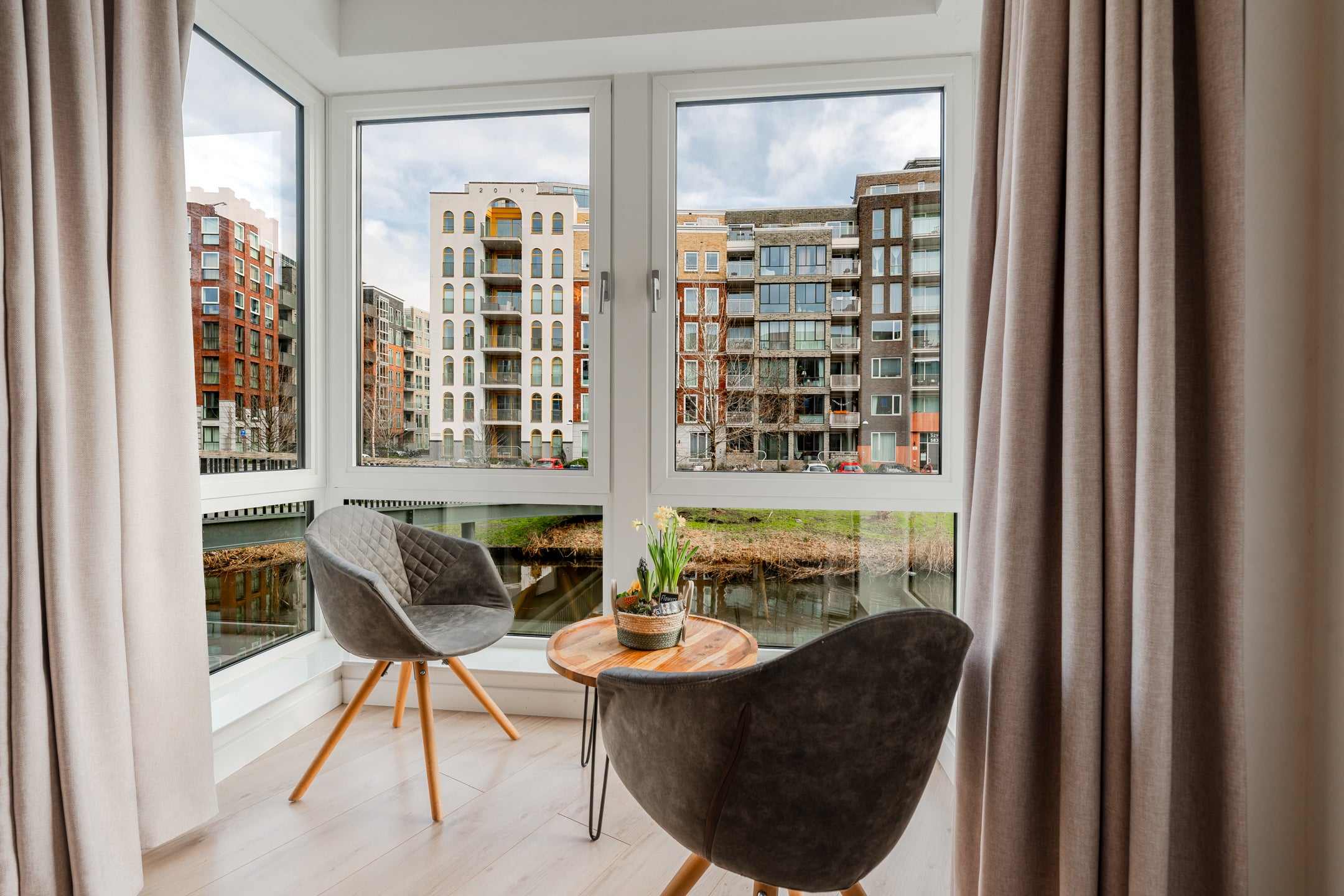 In het bruisende Holland Park, vlakbij Amsterdam, is dit moderne en ruime 3-kamer hoekappartement te koop. Dit goed ingedeelde appartement bevindt zich op de begane grond, direct aan het water en beschikt over een royale privé tuin/terras van circa 28 m² op het zuidwesten, grenzend aan de mooie binnentuin. Met 74 m² woonoppervlakte biedt het appartement 2 ruime slaapkamers en een nette badkamer met inloopdouche en vloerverwarming. De lichte woonkamer met hoge plafonds heeft uitzicht op het water en leidt naar de open woonkeuken, volledig uitgerust met inbouwapparatuur. Bij de woning hoort een privé (fietsen)berging in de onderbouw. Optioneel is er een parkeerplaats in de ondergrondse garage beschikbaar. De woning is gelegen op eigen grond, zonder erfpacht. Energielabel A, volledig geïsoleerd en goed onderhouden. Benieuwd? Maak een afspraak voor een bezichtiging.