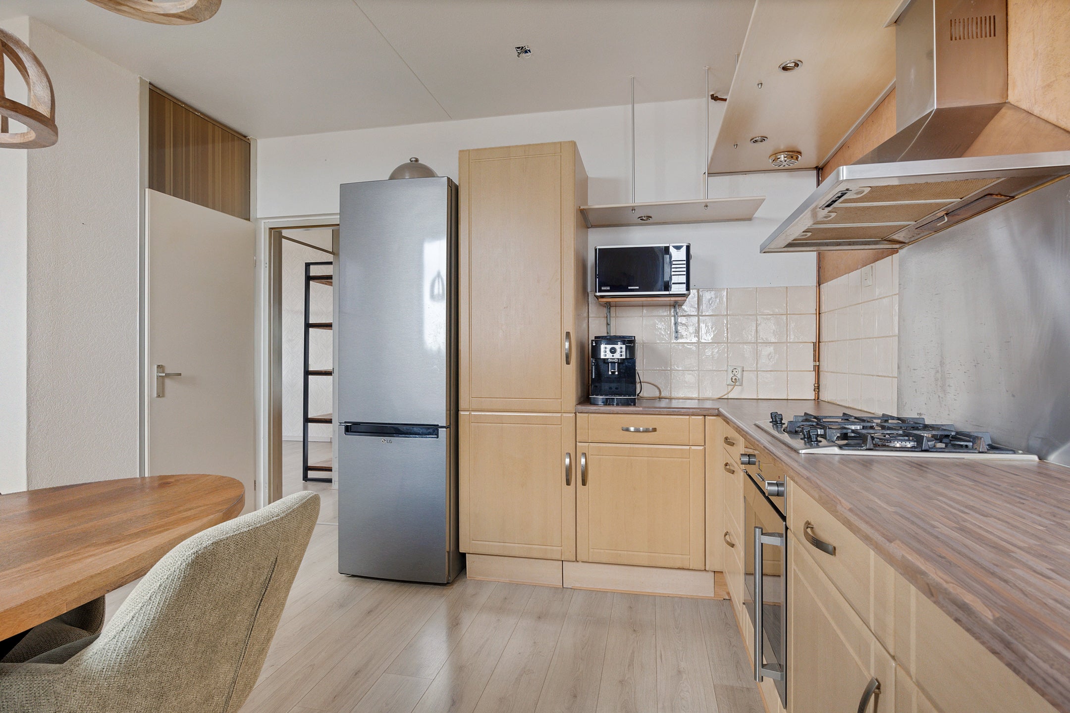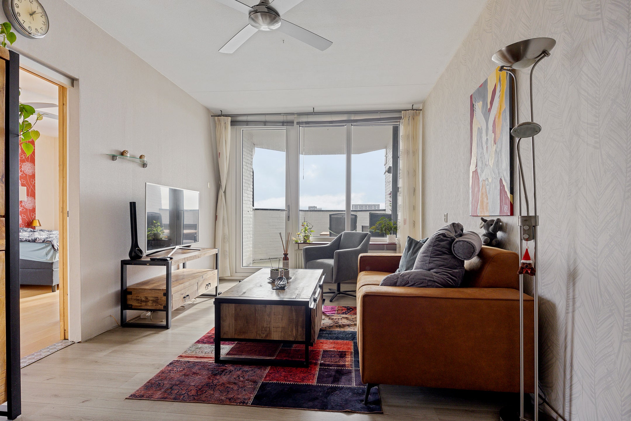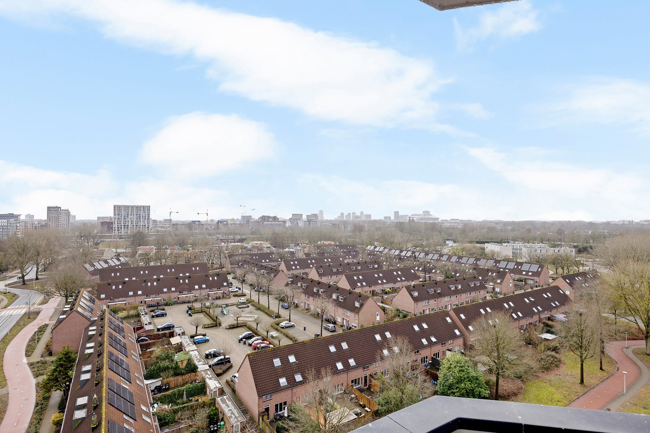 Geniet van een fenomenaal uitzicht over Diemen en Amsterdam in dit lichte en ruime 2-kamer appartement aan de Tarwekamp 160 in Diemen. Dit appartement op de 10e verdieping heeft een woonoppervlakte van 70m² en beschikt over een ruime slaapkamer, dichte keuken, badkamer en een grote woonkamer die toegang biedt tot een heerlijk balkon. Bij binnenkomst vindt u een hal die toegang geeft tot de verschillende ruimtes, waaronder een nette badkamer met inloopdouche en een ruime L-vormige keuken. De slaapkamer is licht en biedt prachtig uitzicht dankzij de grote ramen. Het balkon, gelegen op het zuidoosten, is perfect om van de zon te genieten. Het appartement heeft een eigen berging op de begane grond en is gelegen op eigen grond. De actieve VvE zorgt voor een goed onderhoud van het gebouw.