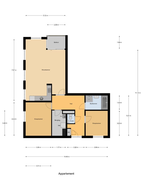 - De galerijflat heeft een woonoppervlakte van 88 m² en beschikt over 3 kamers, waarvan 2 slaapkamers;
