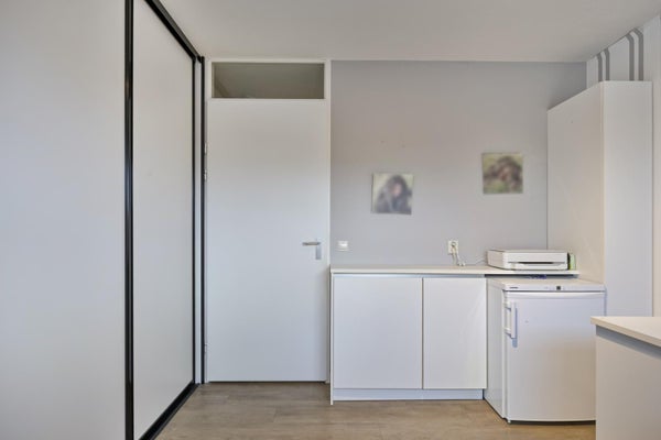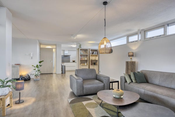 Bij binnenkomst loop je door naar de royale en lichte woonkamer met een open keuken. Dankzij de ligging op de hoogste verdieping is dit een bijzonder prettige en lichte leefruimte. De recent vernieuwde keuken is modern uitgevoerd en van alle gemakken voorzien. Vanuit de woonkamer is de loggia bereikbaar, een fijne plek om beschut te genieten van het buitenleven.