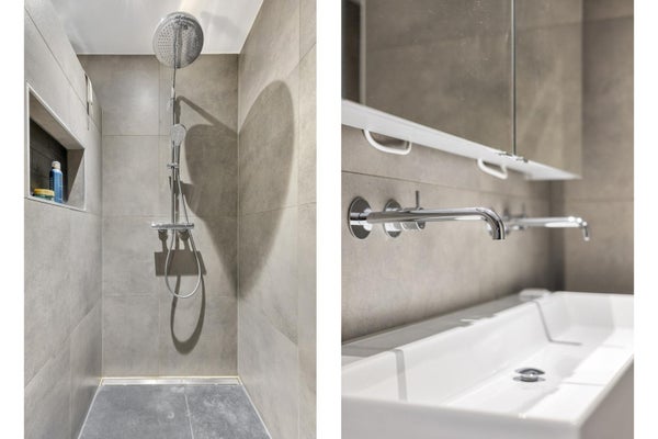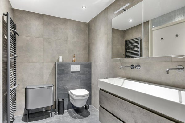 De moderne badkamer is recent vernieuwd en stijlvol afgewerkt. Daarnaast is er een separate wasruimte, ideaal voor het plaatsen van wasmachine, droger en extra bergruimte. Separaat is er nog een tweede toilet.