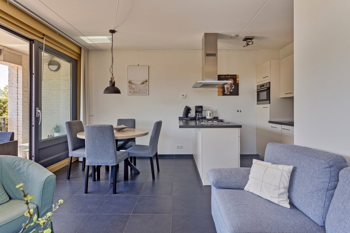 Dit moderne recreatieappartement ligt ideaal aan de voet van de duinen en naast de Domburgse Golfbaan. Op de eerste verdieping van 'Residence Ruimzicht' beschikt het appartement over 2 slaapkamers en een balkon met terras, op slechts enkele stappen van het strand en het centrum van Domburg. Gebouwd in 2011, biedt deze woning een lichte woonkamer van circa 16 m² en een moderne open keuken. De badkamer is voorzien van een ruime douche en toilet.