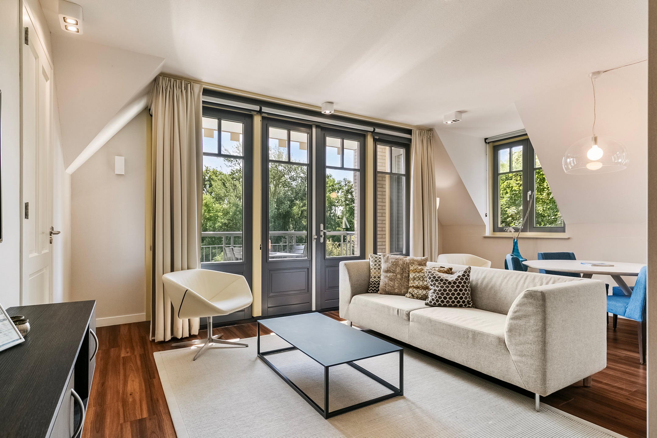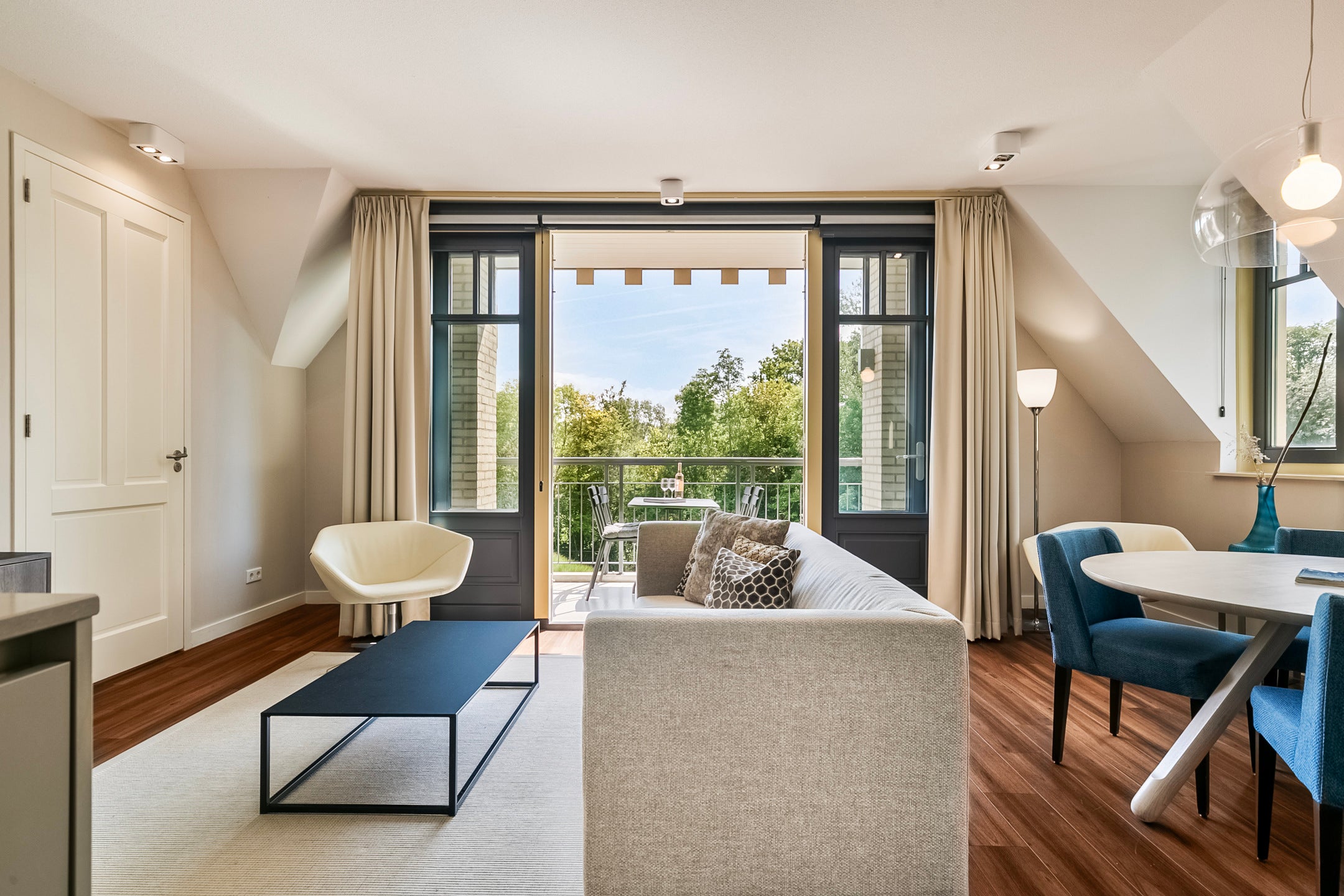 Dit luxe 3-kamerappartement op de tweede verdieping van Mezger Lodges in Domburg heeft bijna 90 m² woonoppervlakte en beschikt over een balkon. Het appartement is mooi ingericht met hoogwaardige materialen en biedt veel comfort. U komt binnen in een hal die toegang biedt tot de sfeervolle living en open keuken, voorzien van inbouwapparatuur. De masterbedroom heeft een luxe eigen badkamer met ligbad en inloopdouche. Naast de woonkamer bevindt zich een tweede slaapkamer met eigen badkamer. U heeft de beschikking over twee privéparkeerplaatsen in de parkeerkelder en een eigen berging. De locatie is ideaal, nabij het natuurgebied de Manteling en het strand. Het appartementencomplex heeft een wellnesscentrum en zwembad.
