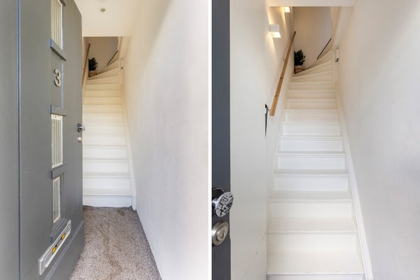 Via je eigen entree op straatniveau kom je binnen in de hal, waar de trap toegang geeft tot de bovenwoning. In de kleine hal vind je de meterkast (12 groepen en 3 aardlekschakelaars).