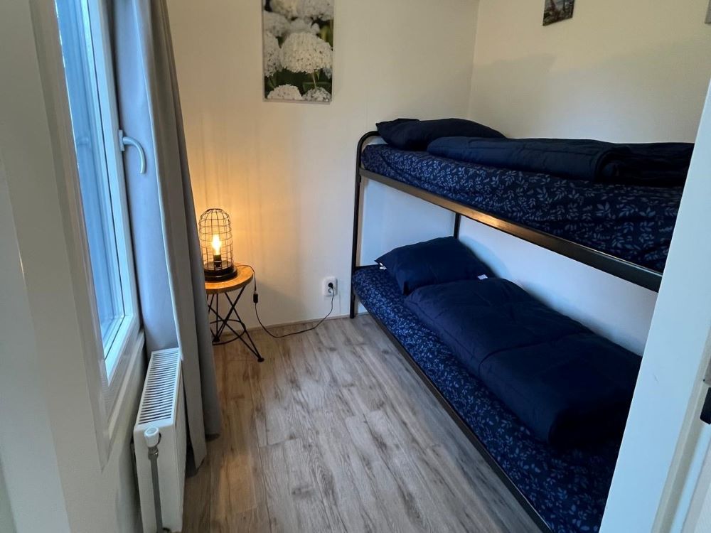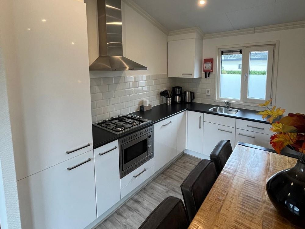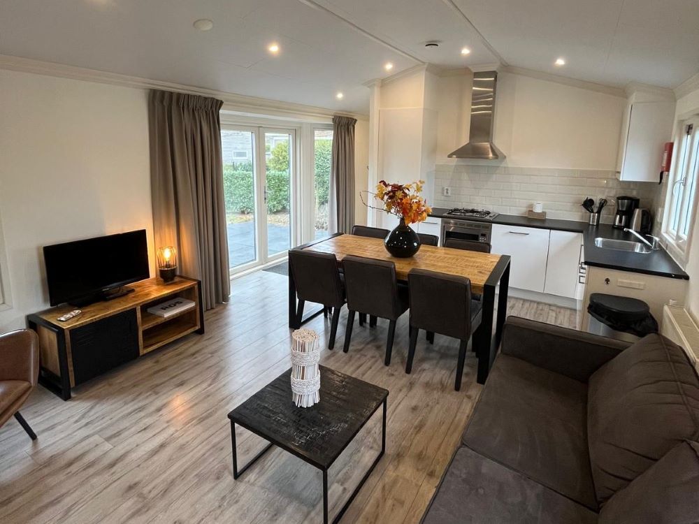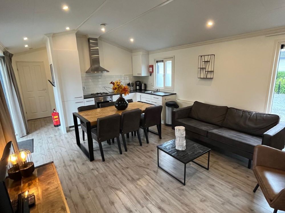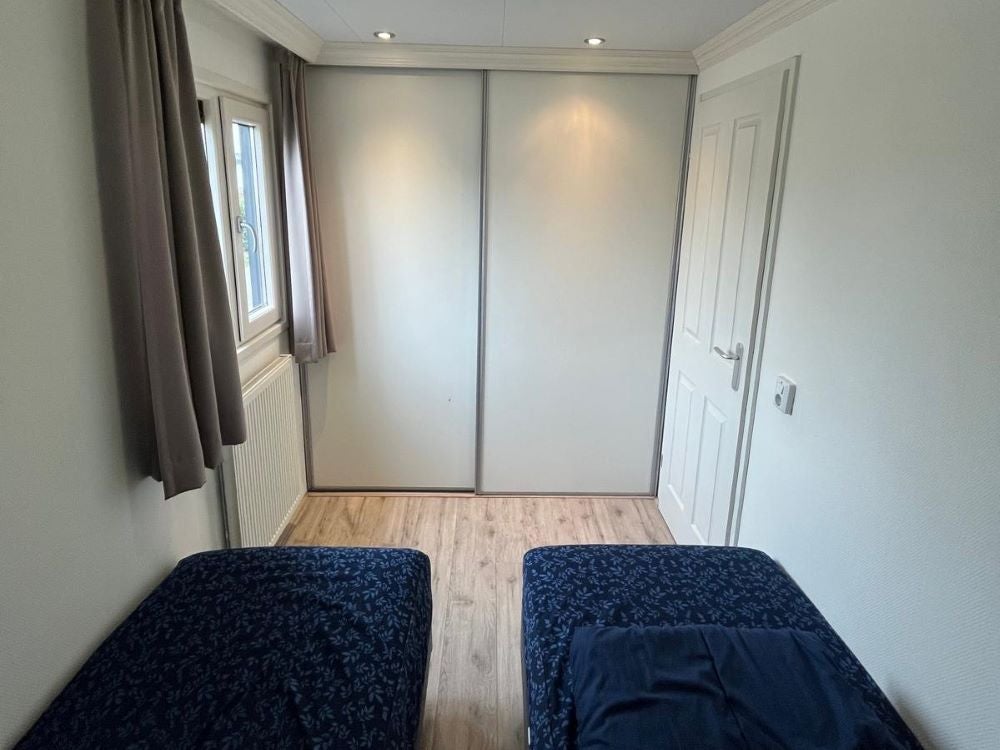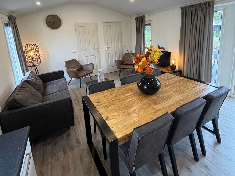 Dit nette 6-persoons Velthorst de Luxe-chalet ligt op een eigen kavel aan het water in EuroParcs De Biesbosch, Dordrecht. Op een rustige plek omringd door natuur baadt het chalet in natuurlijk licht, dankzij de grote raampartijen. De open living omvat een comfortabele loungehoek met bank en fauteuils, een eethoek en een moderne keuken met een koelkast, combimagnetron, vaatwasser en gasstel. Er zijn drie slaapkamers, waarvan de hoofdslaapkamer beschikt over twee eenpersoonsbedden en de tweede slaapkamer ook twee heeft, terwijl de derde slaapkamer een stapelbed biedt. De badkamer is compleet met douche en toilet. Buiten vindt u een zonnige tuin met terras en gazon, perfect voor ontspanning. Het chalet is gemeubileerd en wordt verwarmd middels een CV.