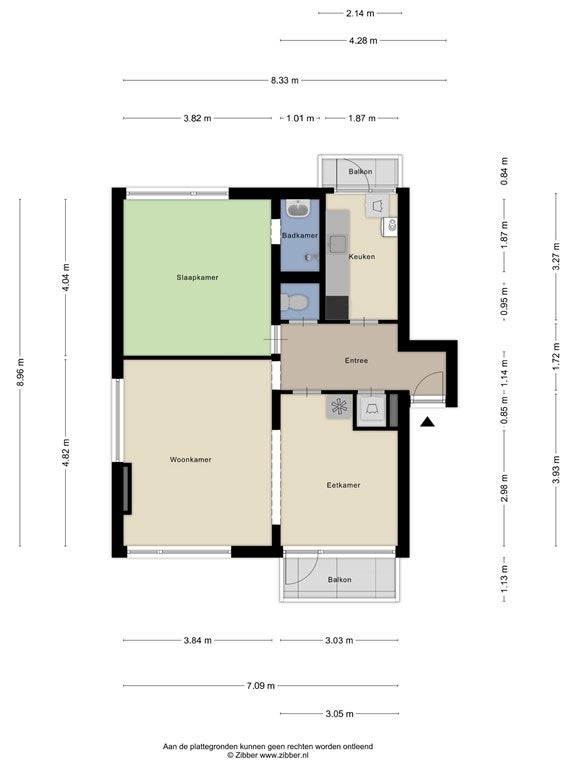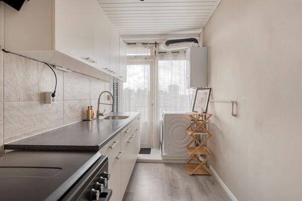 - De portiekflat heeft een woonoppervlakte van 65 m² en beschikt over 2 kamers, waarvan 1 slaapkamer;