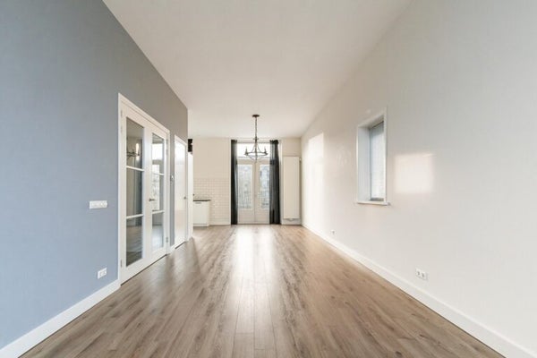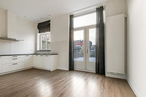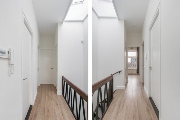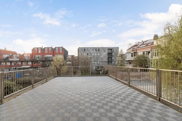 Deze ruime stadswoning met een groot dakterras ligt aan de rand van de historische binnenstad en is op loopafstand van het havengebied, winkels, horecagelegenheden en het Centraal Station. De woning heeft een doordachte indeling met op de begane grond een hal en entree. De eerste verdieping herbergt een ruime woonkamer met laminaatvloer, hoge plafonds, een moderne keuken met inbouwapparatuur en een separaat toilet, alsook toegang tot het dakterras van ca. 58 m² op het zuidwesten. Op de tweede verdieping bevinden zich drie ruime slaapkamers, een studiekamer en een luxe badkamer met vloerverwarming, een dubbele wastafel, een ligbad en inloopdouche. Met een woonoppervlakte van ca. 125 m² en een energielabel A, biedt deze bovenwoning veel mogelijkheden.