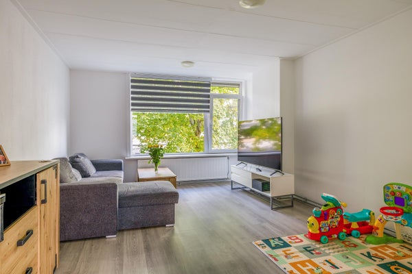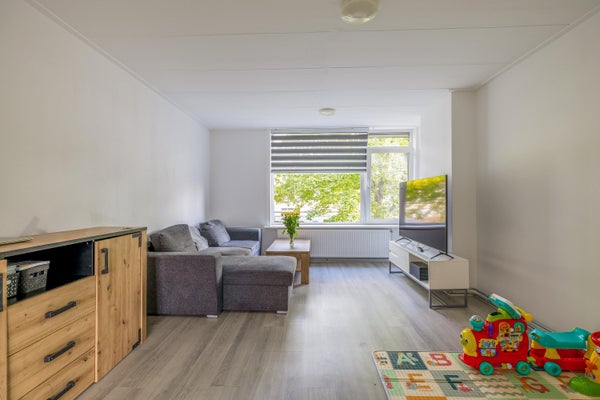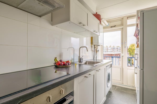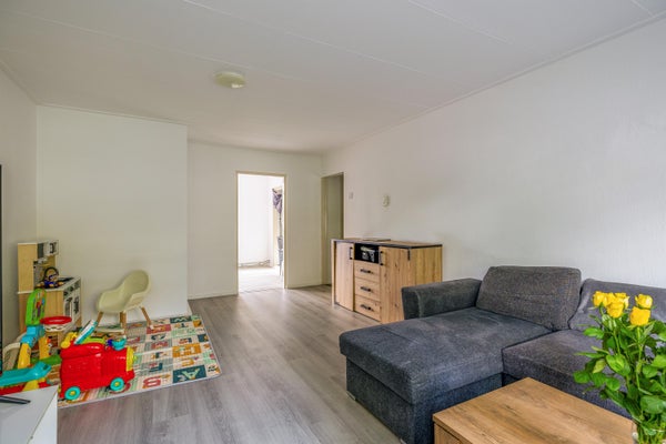 - De portiekflat heeft een woonoppervlakte van 66 m² en beschikt over 3 kamers, waarvan 2 slaapkamers;
