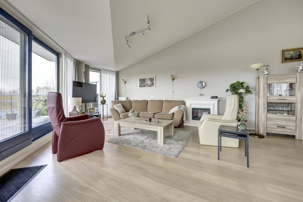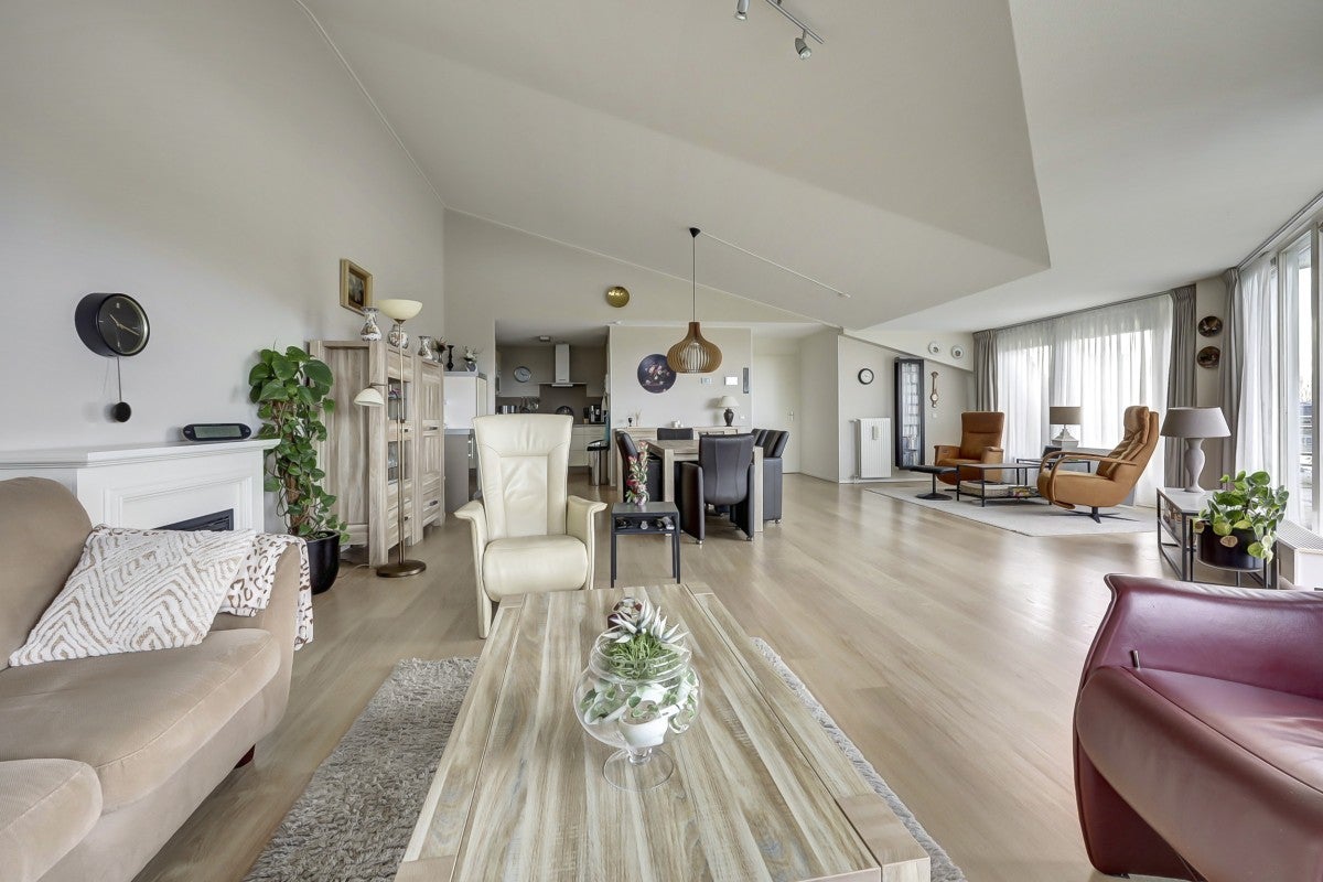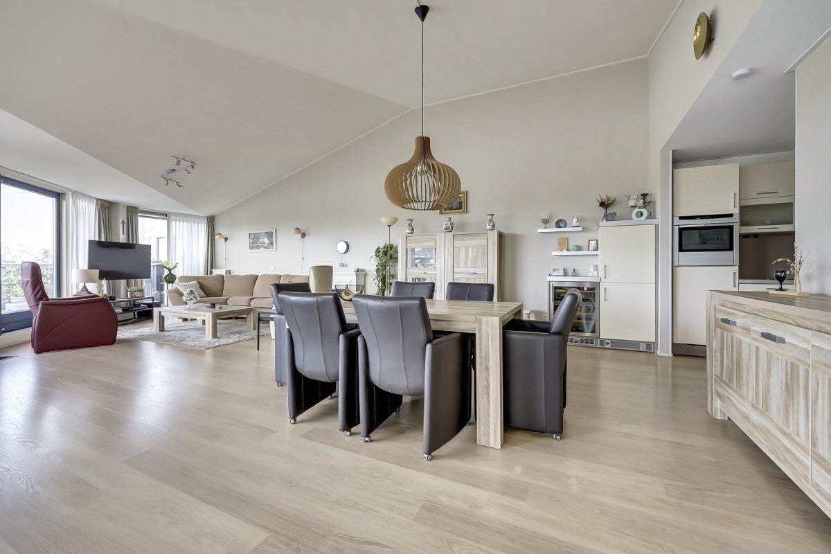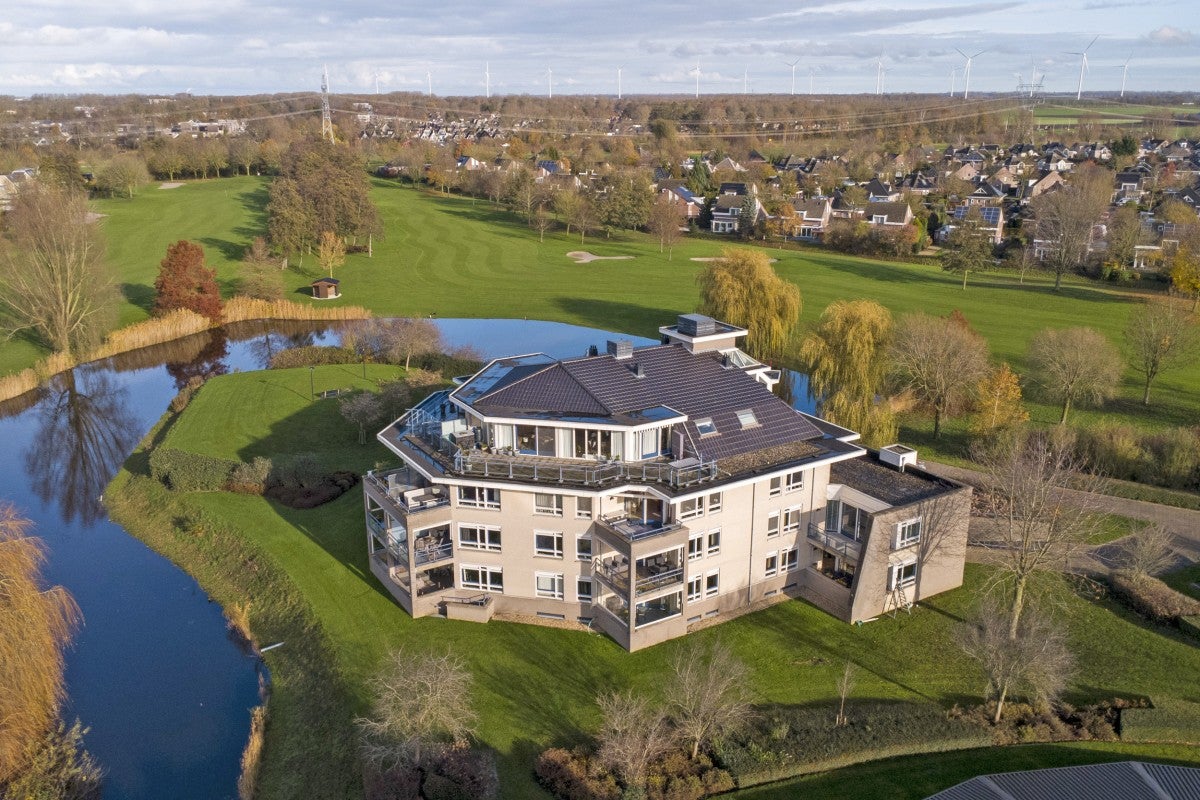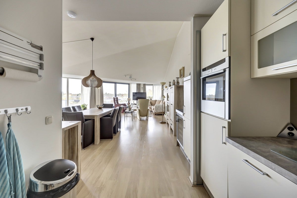 Dit ruime penthouse op een prachtige locatie biedt veel licht, een mooi uitzicht en moderne afwerking. Met een royaal dakterras op het zuidwesten, voorzien van glasschermen, is het een ideale plek om te ontspannen. In het souterrain bevinden zich een privéberging en twee parkeerplaatsen, toegankelijk via een verwarmde oprit. De indeling omvat een centrale entree met trappenhuis en lift. Het appartement heeft een hal die leidt naar een lichte woonkamer met hoge plafonds, twee schuifpuien naar het dakterras, en een keuken met moderne apparatuur zoals een Neff heteluchtoven en een Miele vaatwasser. De slaapkamers hebben Velux dakramen voor extra licht, en de badkamer is uitgerust met een ligbad en douche. Wonen op Golfresidentie betekent genieten van rust en ruimte aan een 18-holes golfbaan.
