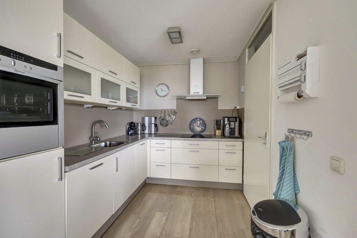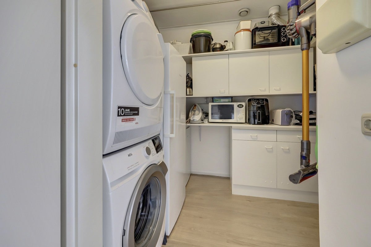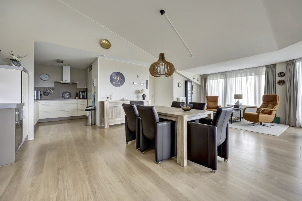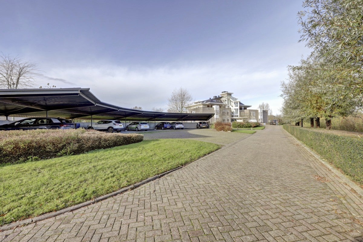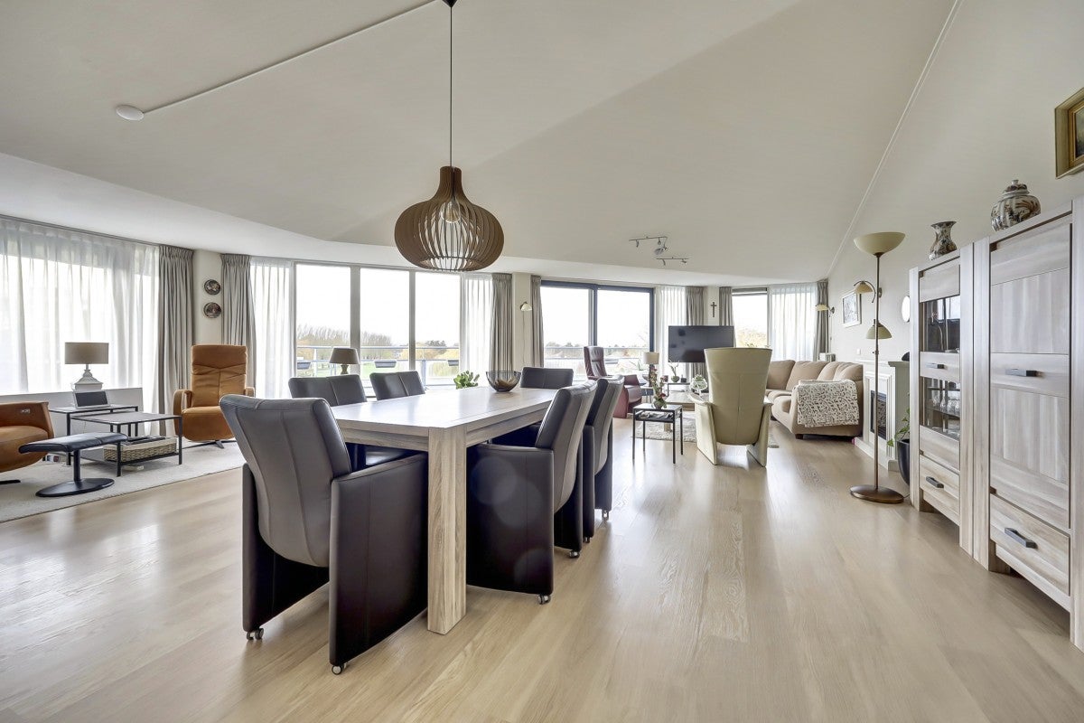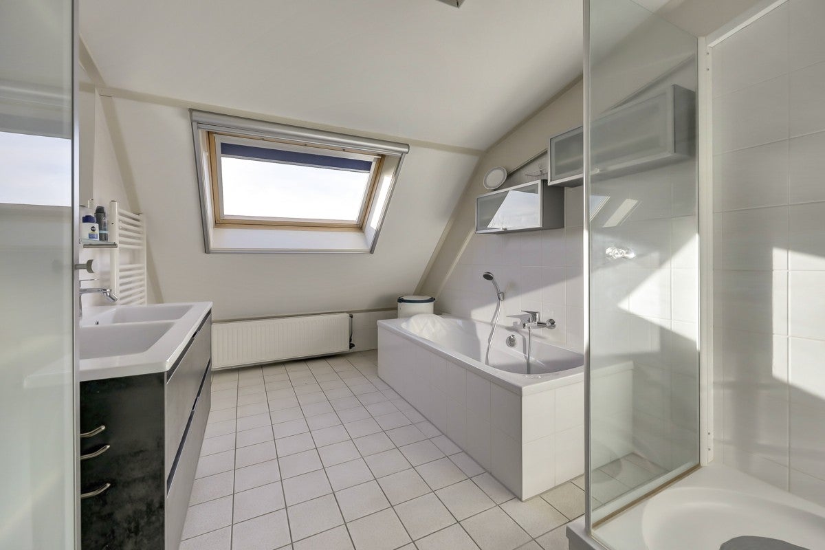 Dit ruime penthouse op een prachtige locatie biedt veel licht, een mooi uitzicht en moderne afwerking. Met een royaal dakterras op het zuidwesten, voorzien van glasschermen, is het een ideale plek om te ontspannen. In het souterrain bevinden zich een privéberging en twee parkeerplaatsen, toegankelijk via een verwarmde oprit. De indeling omvat een centrale entree met trappenhuis en lift. Het appartement heeft een hal die leidt naar een lichte woonkamer met hoge plafonds, twee schuifpuien naar het dakterras, en een keuken met moderne apparatuur zoals een Neff heteluchtoven en een Miele vaatwasser. De slaapkamers hebben Velux dakramen voor extra licht, en de badkamer is uitgerust met een ligbad en douche. Wonen op Golfresidentie betekent genieten van rust en ruimte aan een 18-holes golfbaan.
