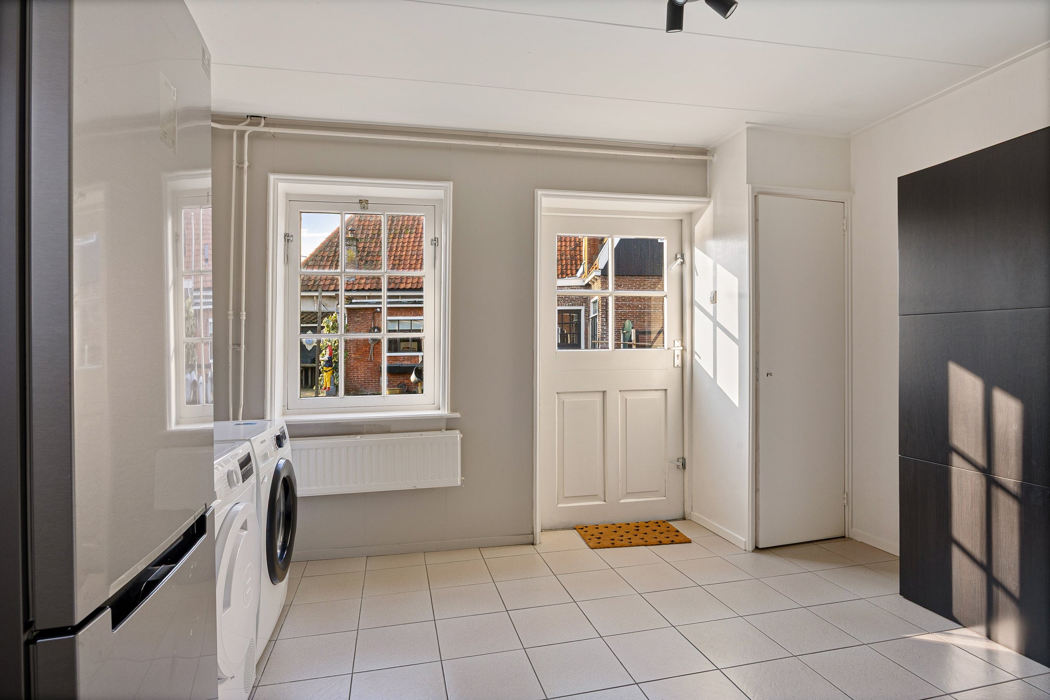 Wonen aan breed vaarwater in het historische hart van Edam is mogelijk in deze karaktervolle woning uit 1910, gelegen aan de Lingerzijde 57. De gevel weerspiegelt geschiedenis, terwijl het interieur stijlvol en luxe is ingericht. Gelegen aan een rustige weg, biedt het huis een schilderachtig uitzicht over het vaarwater en de nabijheid van het stadscentrum. Bij binnenkomst verwelkomt een ruime entree u, voorgezet door een lichte woonkamer en een moderne, luxe open keuken met bijkeuken. De zonnige achtertuin op het zuiden grenst aan het vaarwater, perfect voor gezellige avonden. Op de eerste verdieping zijn drie slaapkamers en een complete badkamer met inloopdouche. Met een woonoppervlakte van 141 m² en een perceel van 138 m², biedt dit huis volop comfort en ruimte.