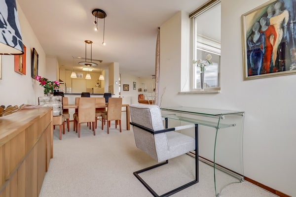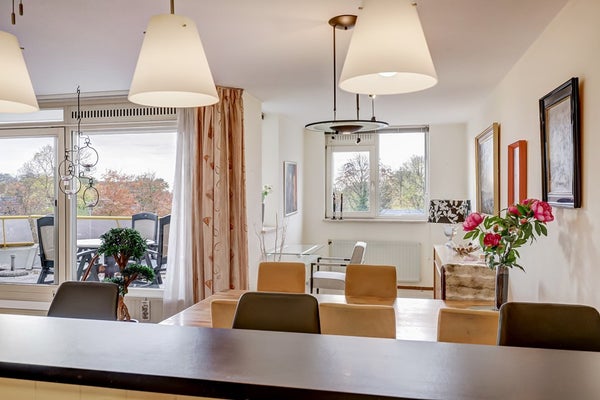 - De portiekflat heeft een woonoppervlakte van 136 m² en beschikt over 3 kamers, waarvan 2 slaapkamers;