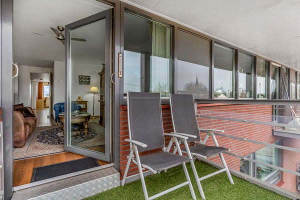 Met een balkon op het oosten en een balkon op het westen is er altijd een plekje in de zon te vinden. Aan de voorzijde kijk je richting het spoor (enkel spoor) en met een schuin oog richting de Oude Kerk aan de Grote Straat. Zit je op het balkon aan de achterzijde, dan zie je de Concordiamolen achter de boom. Hoe mooi is dat?