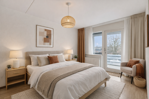 De slaapkamers zijn aan de rustige achterzijde, met mooi uitzicht richting de Concordiamolen. Het tweede balkon grenst aan de master bedroom en de tweede slaapkamer is zeer geschikt als kinderkamer, werkkamer of hobbyruimte.