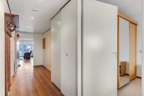 - De portiekflat heeft een woonoppervlakte van 77 m² en beschikt over 3 kamers, waarvan 2 slaapkamers;