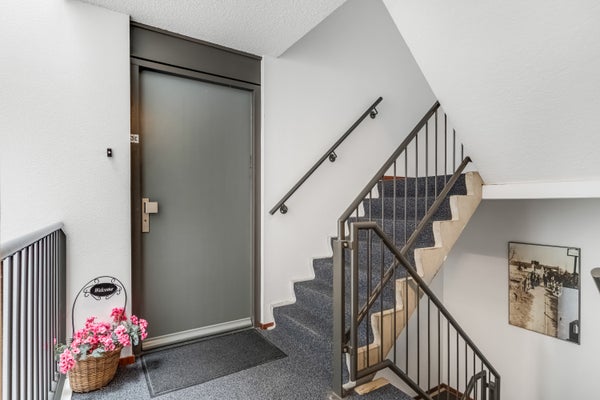 Op de begane grond is de afgesloten, gezamenlijke entree met de brievenbussen en de intercom. Met de trap en de lift zijn de bovengelegen verdiepingen te bereiken, waardoor je de mogelijkheid hebt om levensloopbestendig te wonen. Op het achtergelegen terrein heb je de beschikking over een vaste parkeerplaats en de fiets kan in de privéberging op de begane grond. Het goed onderhouden gebouw heeft een luxe uitstraling, mede dankzij het kleurgebruik en de toegepaste materialen.