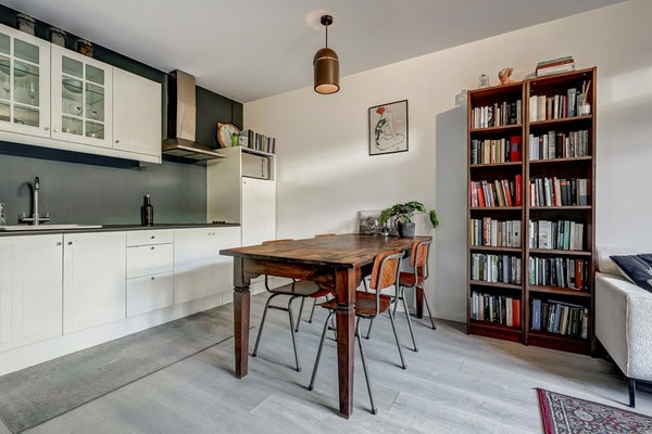 - De benedenwoning heeft een woonoppervlakte van 56 m² en beschikt over 2 kamers, waarvan 1 slaapkamer;