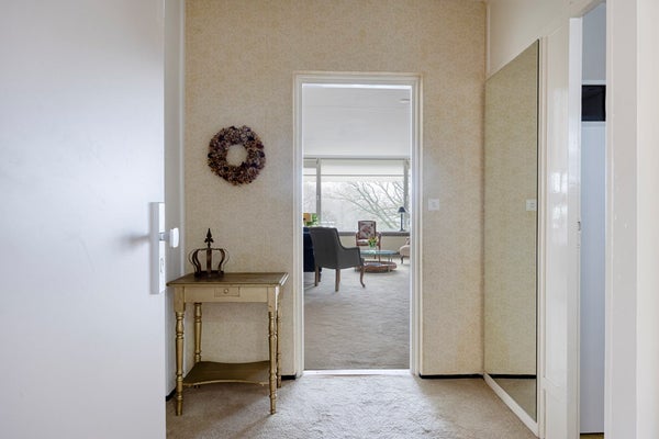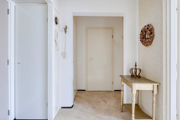 U betreedt het complex via de gezamenlijke entree, waar zich de brievenbussen, intercominstallatie en het trappenhuis met lift bevinden. Eenmaal binnen in het appartement komt u in de hal. Hier is ruimte voor een kapstok en-/of een opbergmeubel. De hal vormt het centrale hart van de woning en biedt toegang tot alle vertrekken, waardoor de indeling praktisch en overzichtelijk aanvoelt.