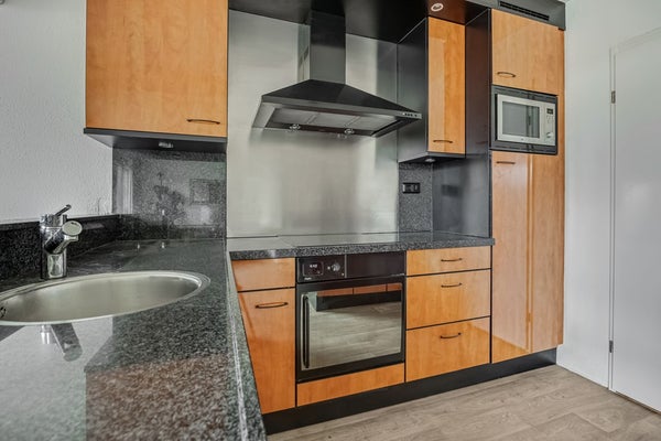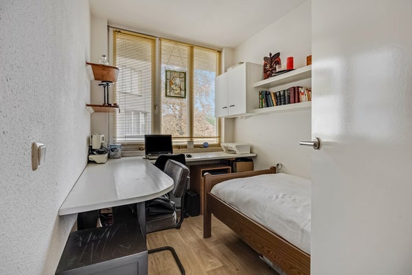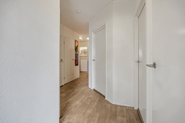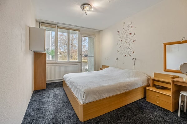 - De portiekflat heeft een woonoppervlakte van 92 m² en beschikt over 3 kamers, waarvan 2 slaapkamers;