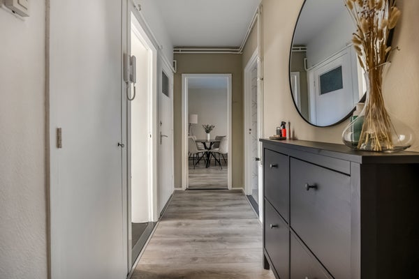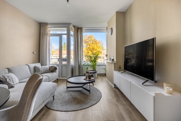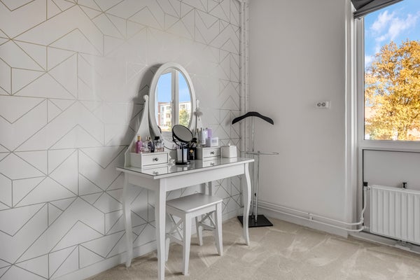 • De portiekflat heeft een woonoppervlakte van 56 m² en beschikt over 3 kamers, waarvan 2 slaapkamers;
