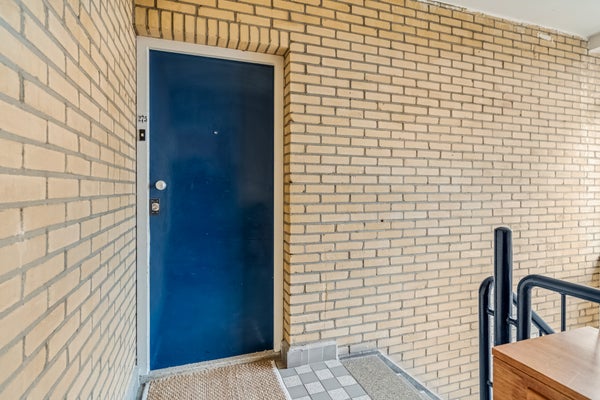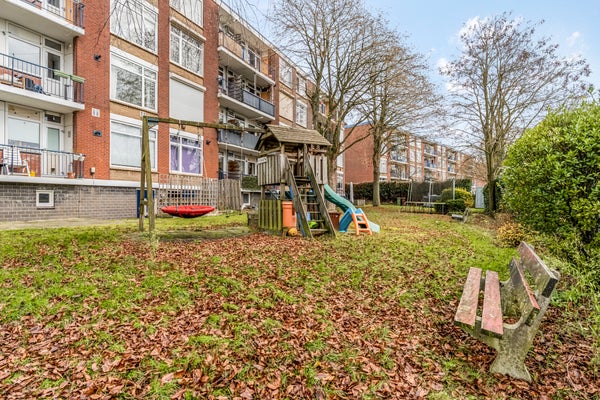 Een breed pad aan de voorzijde, met aan twee kanten een fraaie tuin, leidt naar de entree van huisnummer 261 t/m 275. Aan de buitenzijde zijn de brievenbussen en de intercom. Eenmaal binnen kun je met de trap naar de bergingen en naar de bovengelegen verdiepingen, elk met slechts twee appartementen. Bij dit appartement hoort een ruime berging, voor de fiets en andere spullen. Aan de achterzijde van het gebouw is een ruime, gezamenlijke tuin met een speeltoestel voor de jongste bewoners.