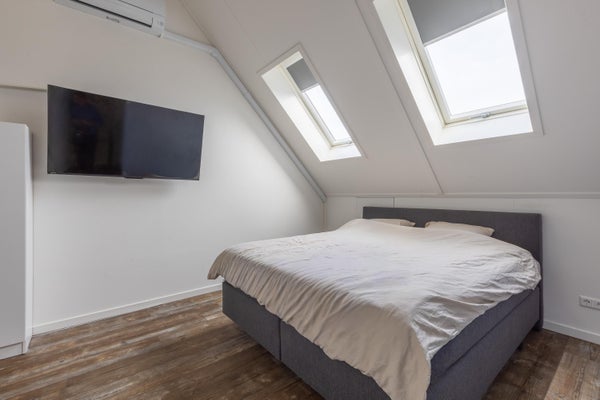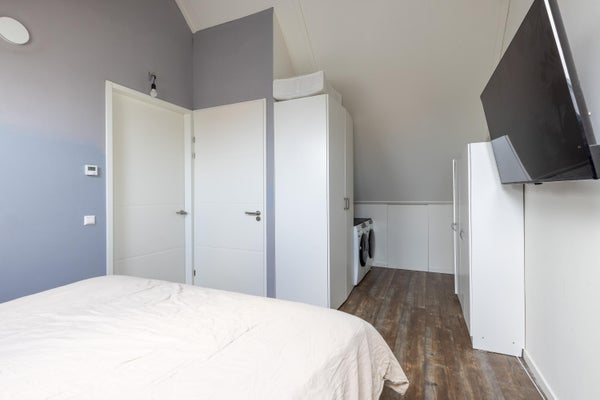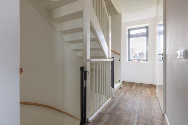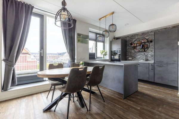 Aan de Zuidersingel 33 in Eemnes bevindt zich een energiezuinige bovenwoning, gebouwd in 2023 met een woonoppervlak van circa 70 m², verdeeld over twee verdiepingen. De woning heeft twee slaapkamers en een ruime woonkamer met open keuken, die via een stijlvolle deur toegang geeft tot een balkon van 11,5 m². De moderne keuken is uitgerust met een kookeiland, inductiekookplaat en vaatwasser. Beide woonlagen beschikken over vloerverwarming en airconditioning. De woning heeft een eigen entree en aparte berging van 6,6 m². Gelegen aan de rand van het dorp biedt deze woning zowel rust als nabijheid tot voorzieningen en uitstekende bereikbaarheid via de A1 en A27. De woning is volledig geïsoleerd met energielabel A++++.