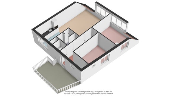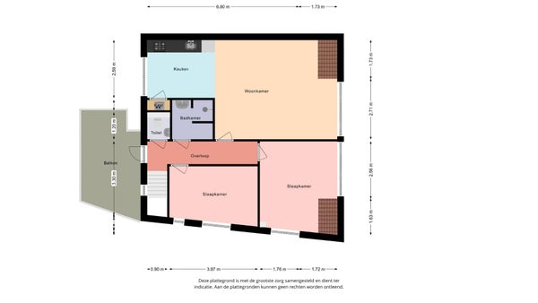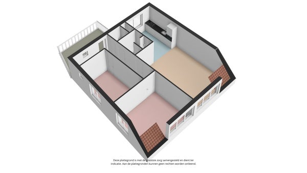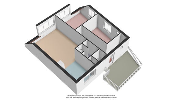 - De galerijflat heeft een woonoppervlakte van 72 m² en beschikt over 3 kamers, waarvan 2 slaapkamers;