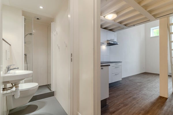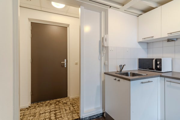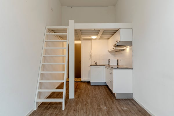 - De portiekflat heeft een woonoppervlakte van 20 m² en beschikt over 2 kamers, waarvan 1 slaapkamer;