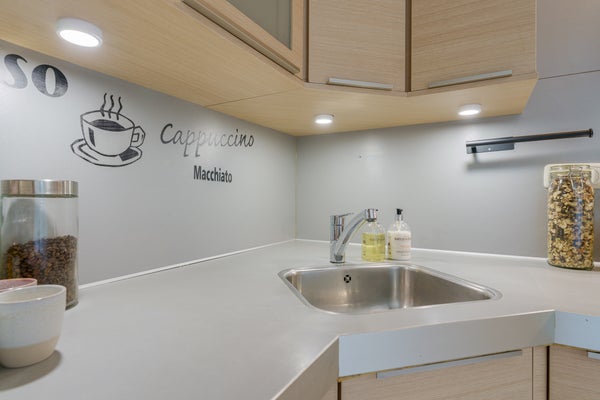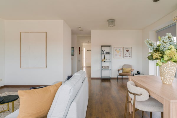 - De galerijflat heeft een woonoppervlakte van 74 m² en beschikt over 3 kamers, waarvan 2 slaapkamers;
