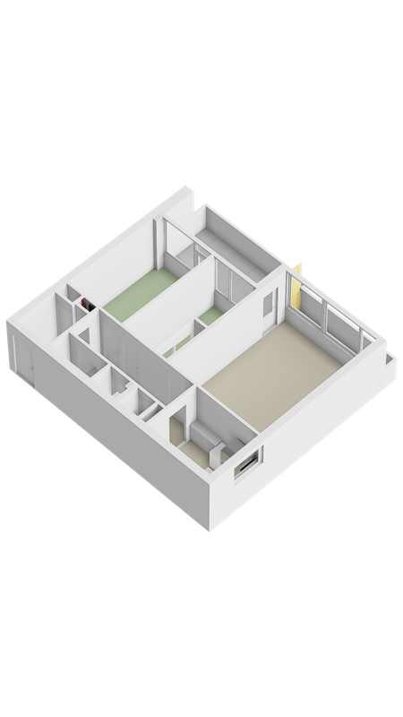 - De portiekflat heeft een woonoppervlakte van 71 m² en beschikt over 3 kamers, waarvan 2 slaapkamers;