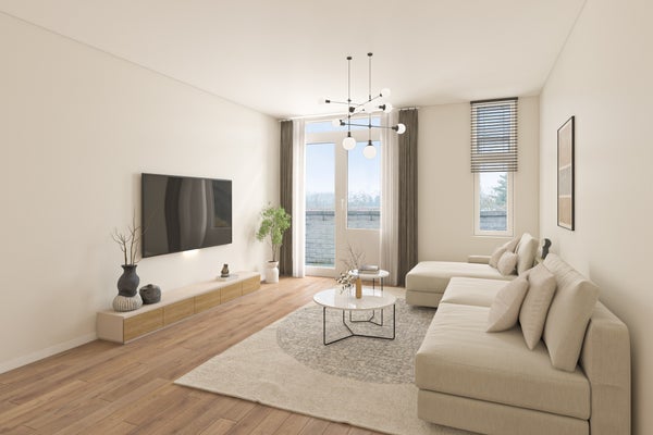 - De galerijflat heeft een woonoppervlakte van 46 m² en beschikt over 2 kamers, waarvan 1 slaapkamer;